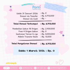 Terimakasih kepada seluruh donatur yang telah menyisihkan sebagian rezekinya melalui pantibekasi.org.