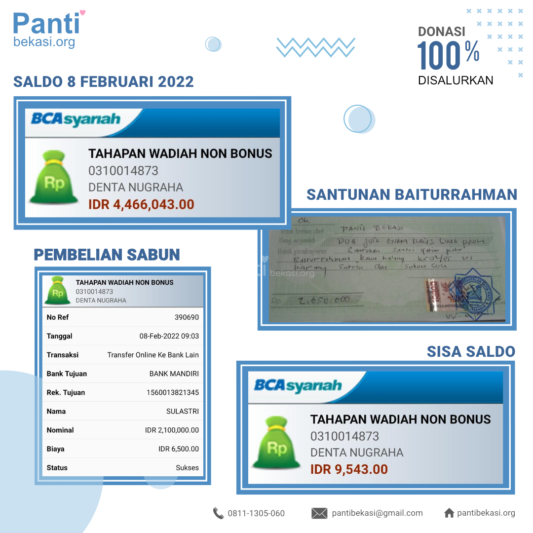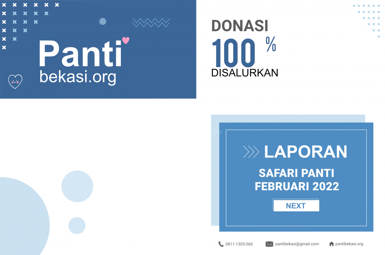Alhamdulillah Safari Panti bulan FEBRUARI 2022 telah kami laksanakan. Kami memohon maaf karena seharusnya safari panti diadakan di tanggal 6 Februari, namun karena ada kendala, maka kami undur menjadi tanggal 8 Februari, meskipun tertunda dan dari pagi Allah kasih hujan, alhamdulillah amanah dari kawan-kawan donatur telah kami sampaikan dan berjalan dengan lancar. Terimakasih kepada seluruh donatur yang telah menyisihkan sebagian rezekinya melalui pantibekasi.org.