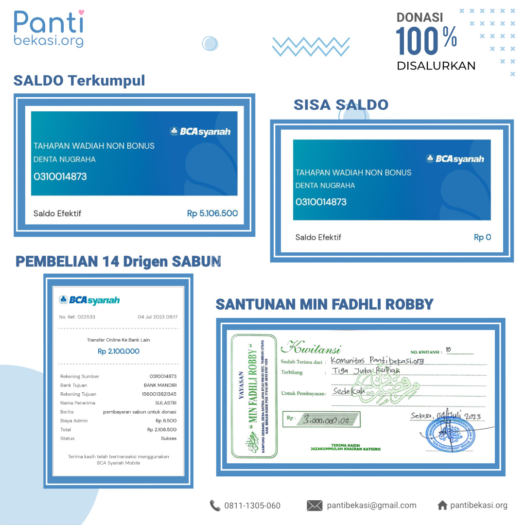 Terimakasih kepada seluruh donatur yang telah menyisihkan sebagian rezekinya melalui pantibekasi.org.